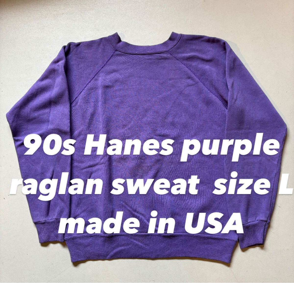 > 90s Hanes purple raglan sweat size L made in USA 90年台 ラグラン スウェット ヘインズ アメリカ製 長袖