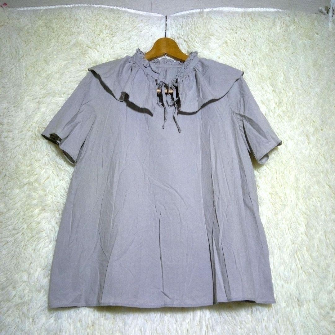- a.v.v アーヴェヴェ【M】レディース フリル付 半袖カットソー 綿混 グレー