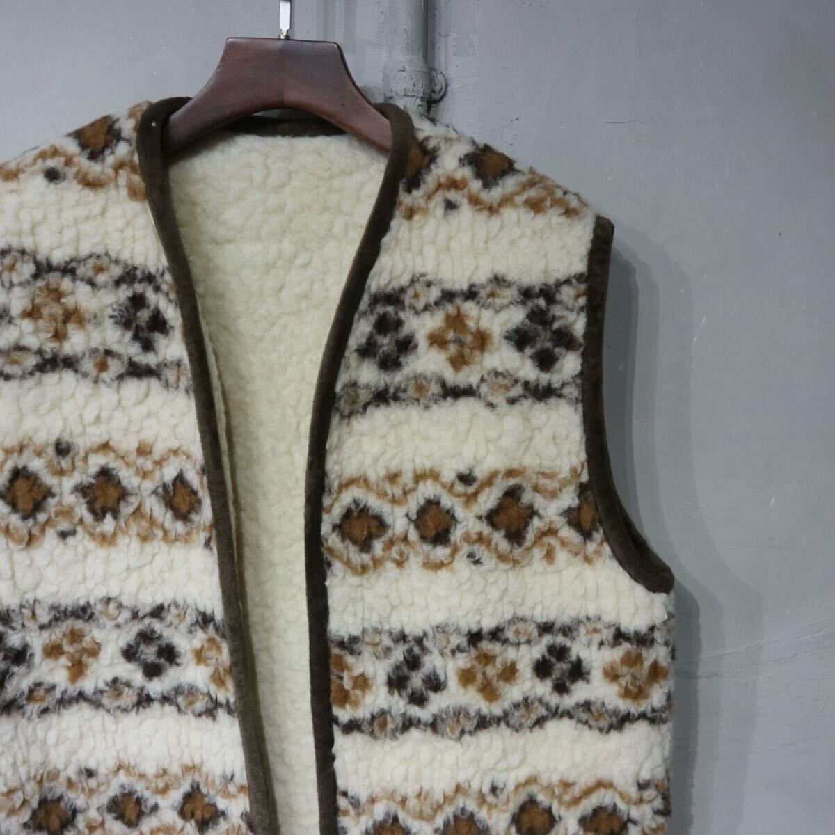 - 【即決】ボアベスト 総柄 ベージュ ブラウン パイピング 古着