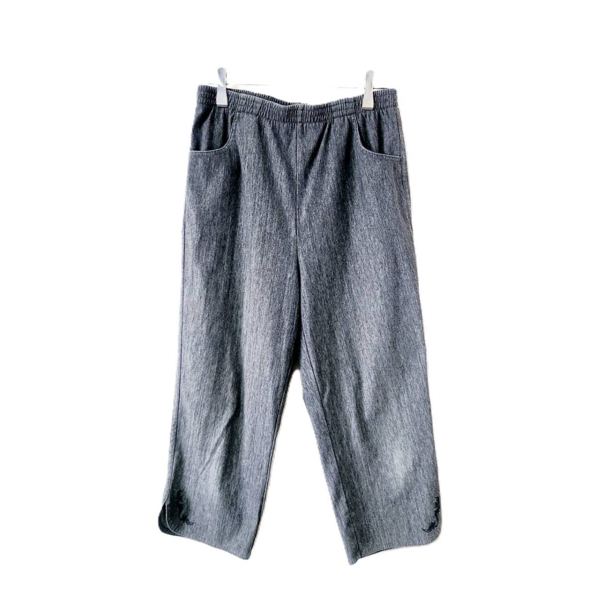 - カジュアルパンツ グレー ゴムウエスト ストレッチ 七分丈 M シンプル