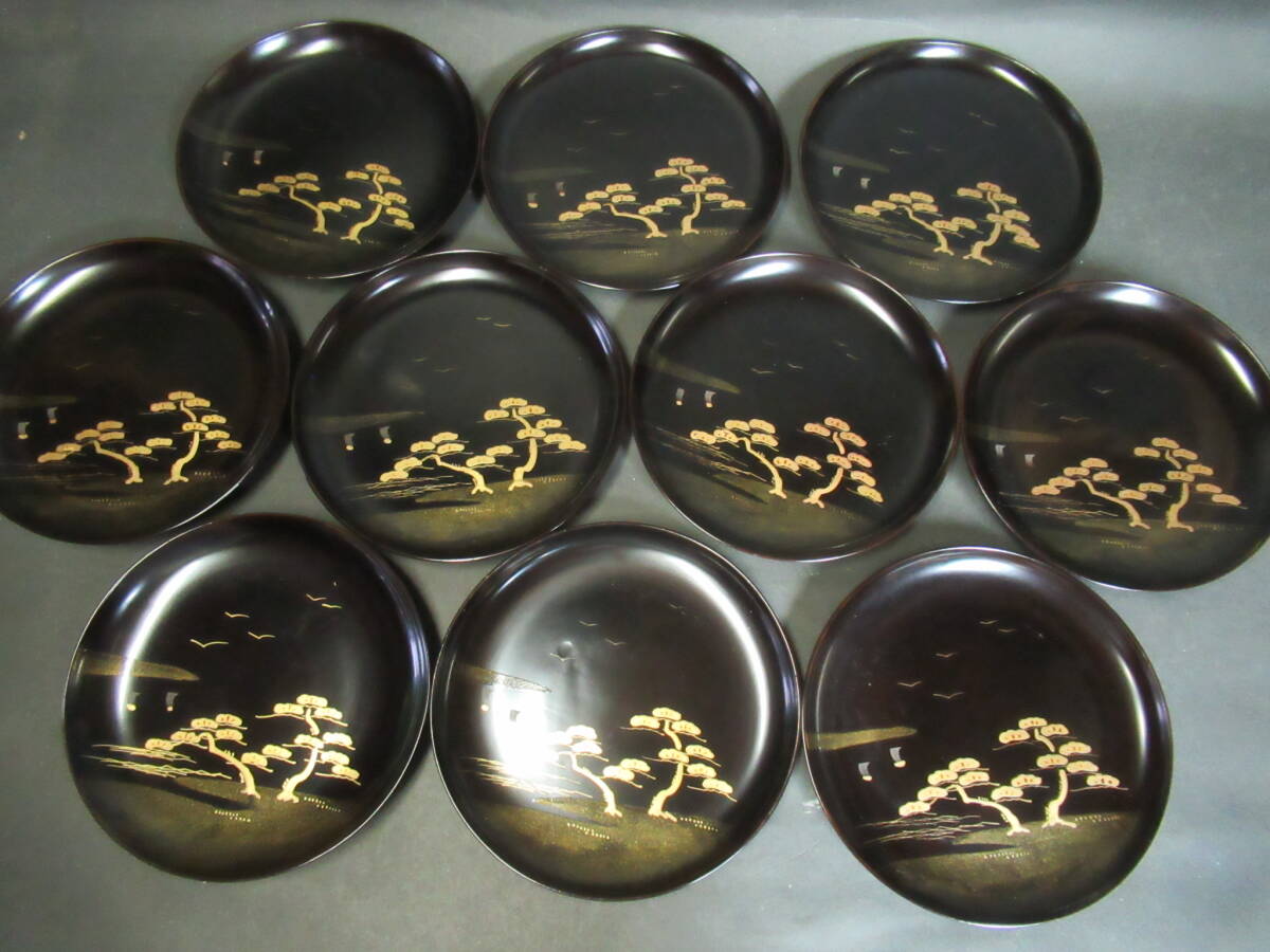 - 【広吉堂】輪島塗 銘々皿 木製 木皿 蒔絵 美品 10枚A