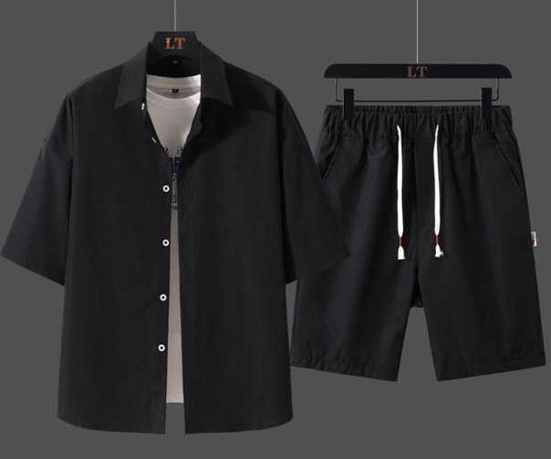 - 新販売 上下セット 無地 スポーツウエア メンズ 浴衣 短パンツ 部屋着 ルームウェア 夏祭り カジュアル 黒/2XL
