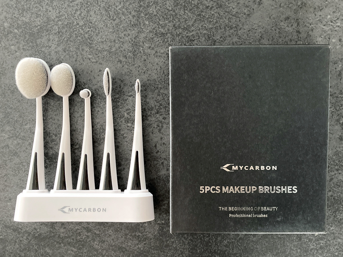- 未使用◆MYCARBON マイカーボン 歯ブラシ型 メイクブラシ 5本 セット◆白 おしゃれ チーク ファンデーション アイシャドウ リップ ブラシ