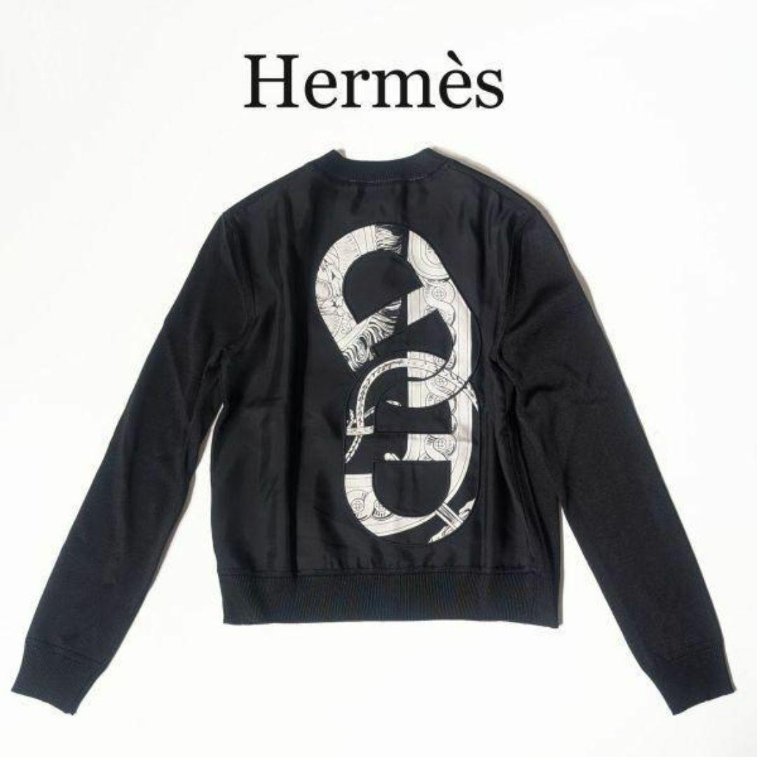 - Hermes エルメス 黒 ツイルレーヌ ブラック 34 シルク カーディガン
