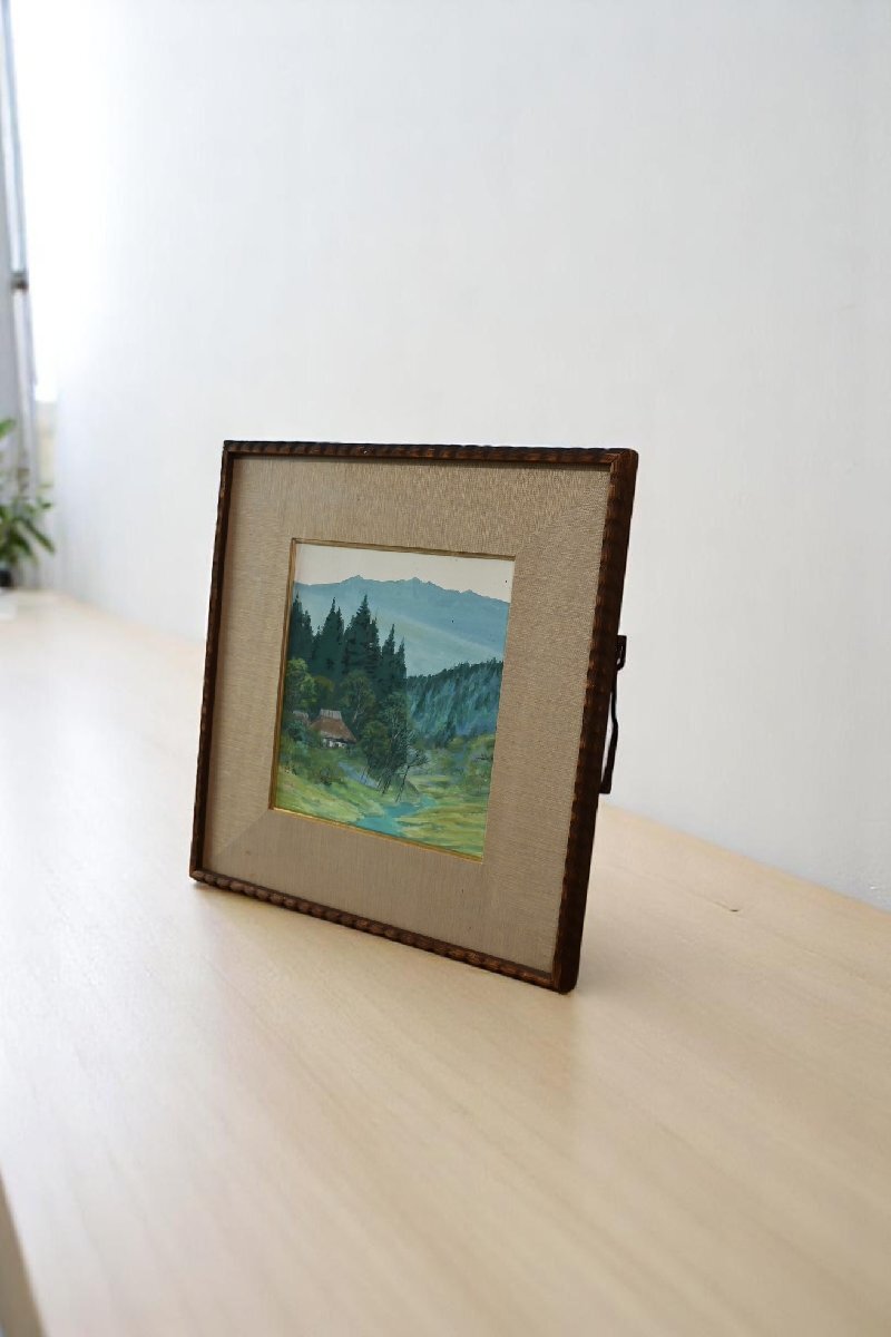 - ○白石勝敏 水彩画作品 色紙 額 静かな山あいの風景 落ちつく緑の絵 日本画 和モダン アート 古道具のgplus広島 2505i