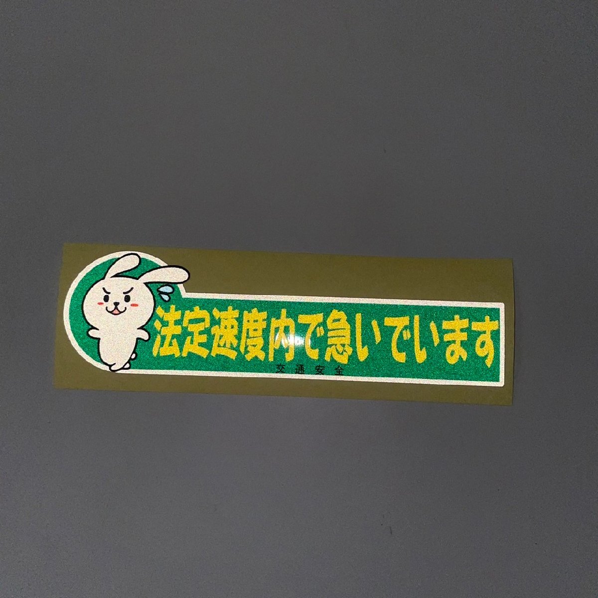 - (反射)おもしろ ステッカー 法定速度内で急いでいます 緑 ウサギ 交通安全 安全運転 あおり防止 かわいい トラック 車 オートバイ