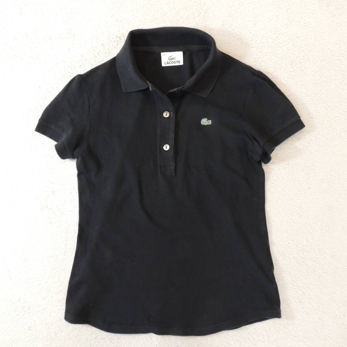 - LACOSTE ラコステ 胸刺繍ロゴ カノコ 鹿の子ポロシャツ 黒 ブラック レディース38(JPレディースM)