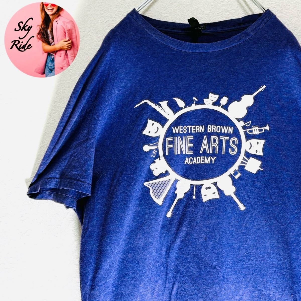 > DISTRICT ディストリクト FINE ARTS ウエスタンブラウン ビッグプリント メンズ Tシャツ パープル XL 古着 #SB0176