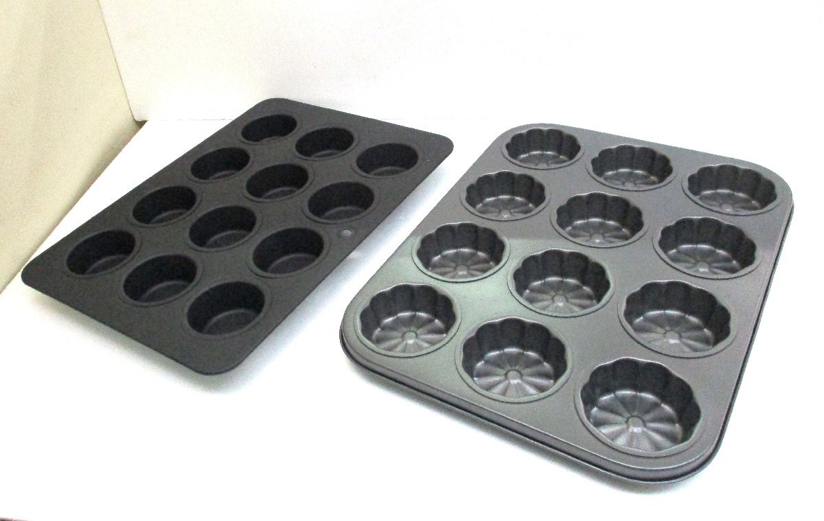 - ★ 100387 お菓子焼型 マフィン&花型 鉄製 マフィン型φ6.5cm 花型φ7.2cm 長期保管のため裏側サビ少々有 未使用 ★