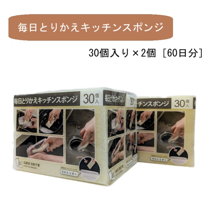 - 【P0135】使い捨てキッチンスポンジ 30個入 [×2個セット]毎日とりかえ 60日分