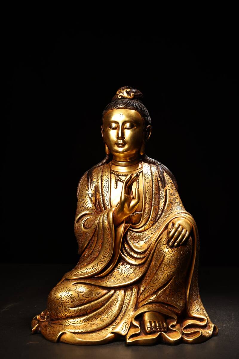 - 『大明永樂年施・紫銅製・撒金・浮彫・鏨刻・觀音菩薩像・密宗密教・供養品・仏像・仏教古美術品』極細工 置物 古賞物 中国古玩 中国古美術