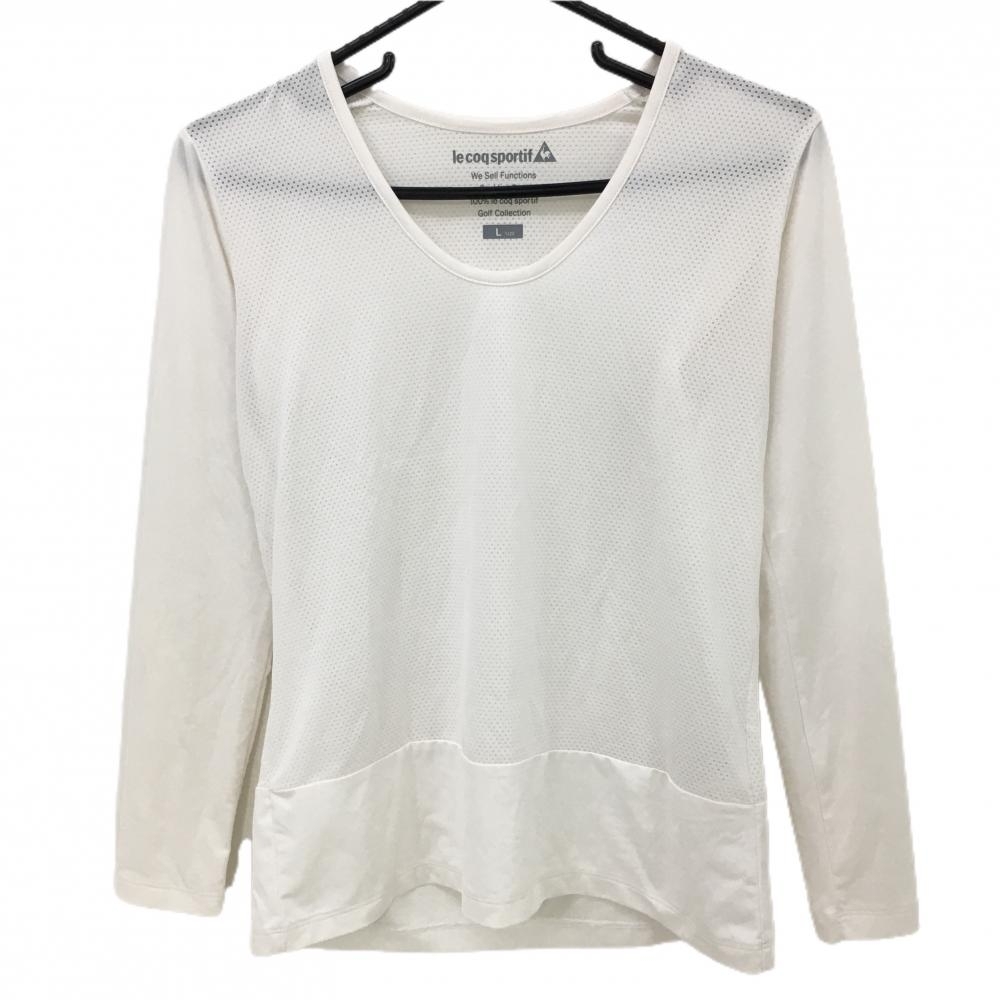 - 【超美品】ルコックゴルフ インナーシャツ 白 一部メッシュ地 袖ロゴプリント レディース L ゴルフウェア le coq sportif