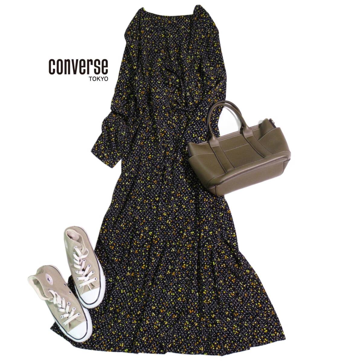 - コンバース CONVERSE TOKYO 大人可愛い☆スター ドット 総柄 とろみ カシュクール ワンピース