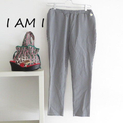 > 送料込 匿名配送 IAMI アイアムアイ ナイロンストレッチパンツ 目玉焼き付き パンツ ギンガムチェック