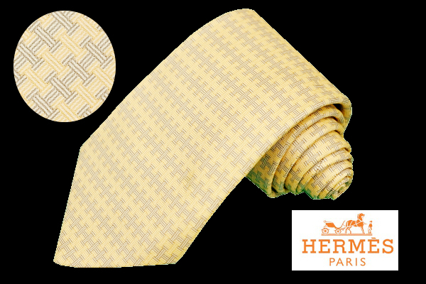 > N-2919★送料無料★HERMES PARIS エルメス パリ★フランス製 イエロー黄色 Hロゴ柄 豪華な織り生地 シルクネクタイ