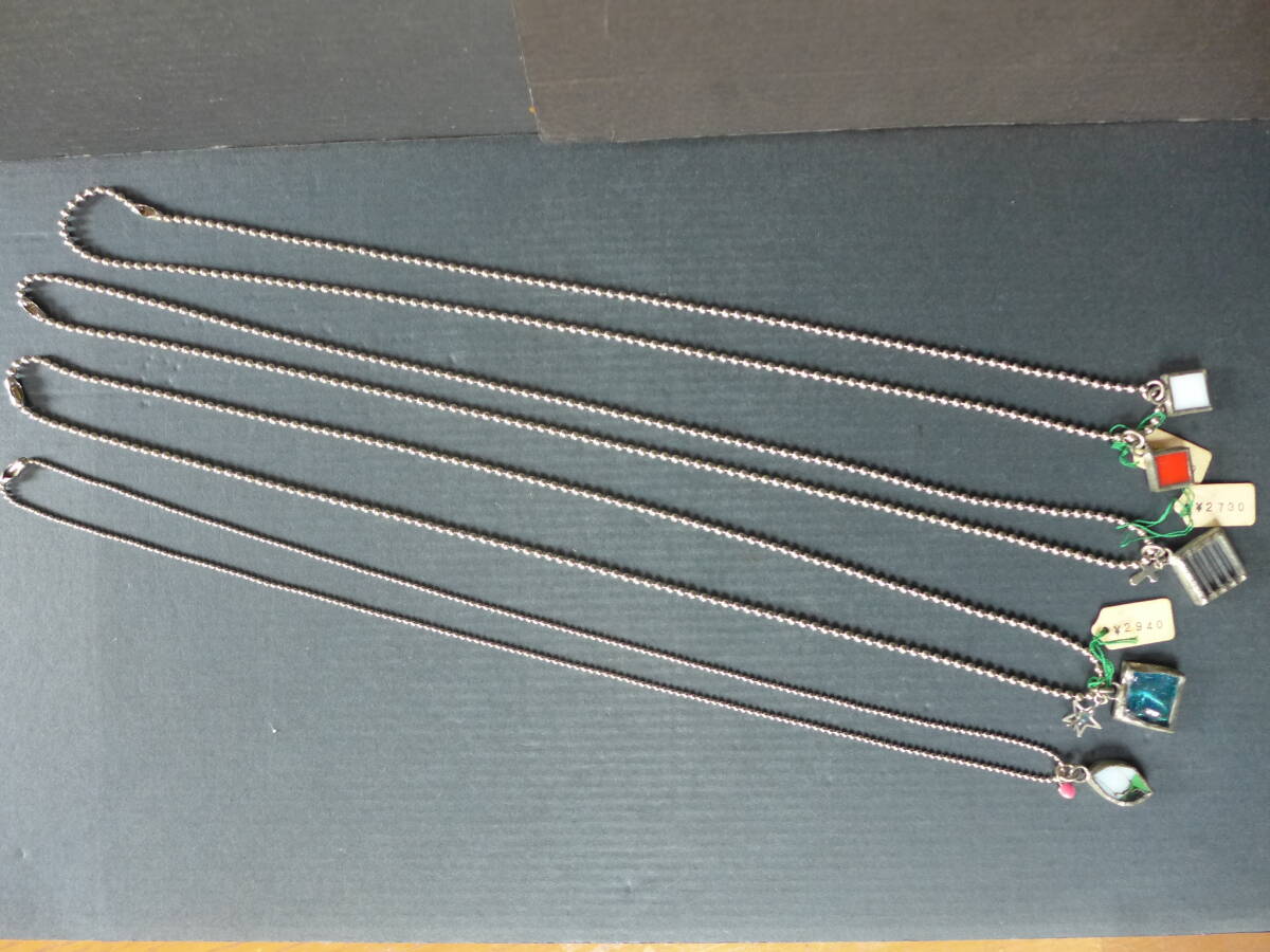 - ★ 当時物 【未使用品】 ガラス装飾入り金属ハンドメイド ペンダント付き ネックレス 各種4点纏めて 装飾ガラス ★
