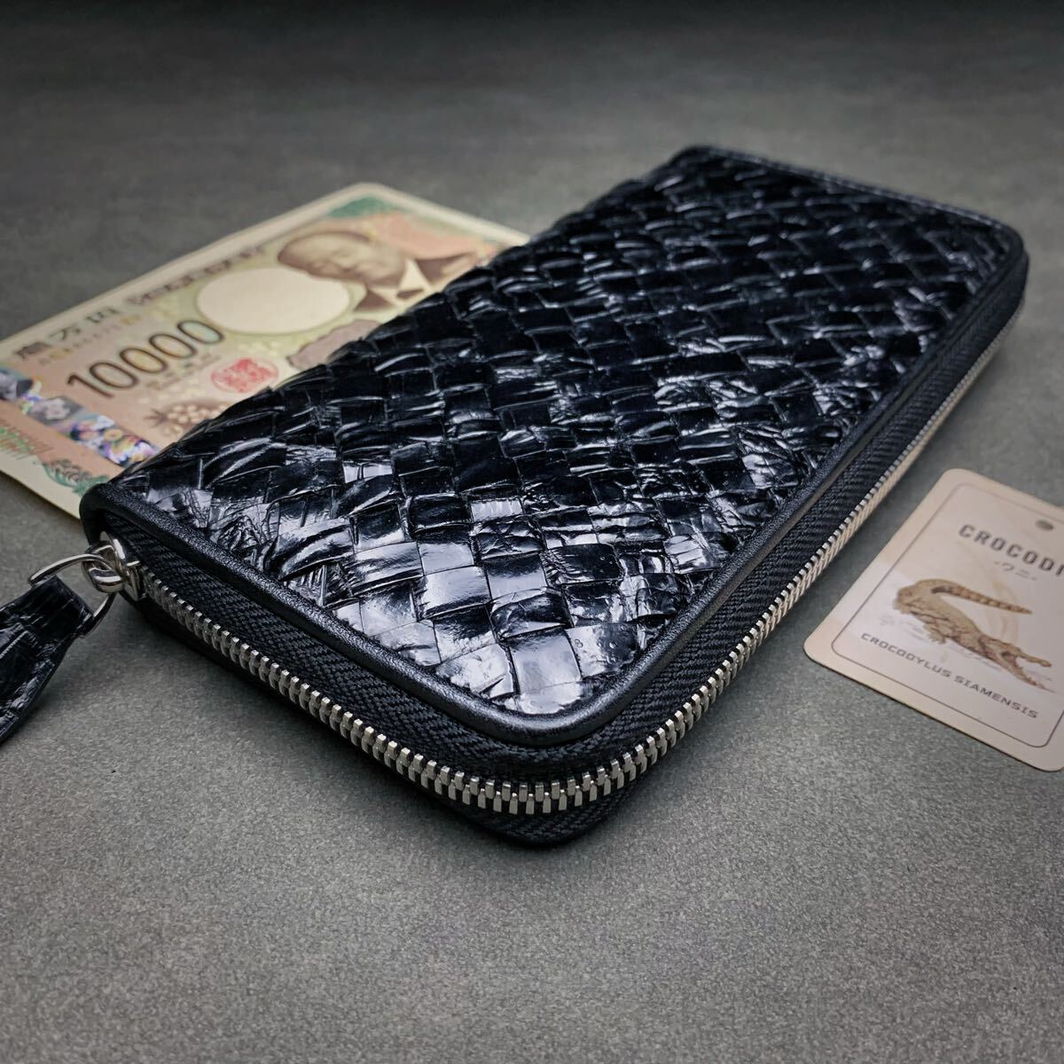 - 数量限定 クロコダイル 長財布(ラウンドファスナー/センター部位/ハンドメイド/編み込み/腹革使用/本ワニ革/希少品/新品未使用/実物撮影)