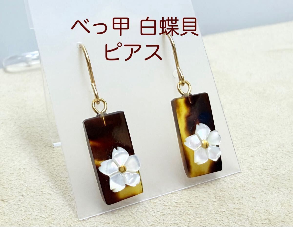 - べっ甲 白蝶貝 15-7㎜ チタン ピアス(LA-7466)