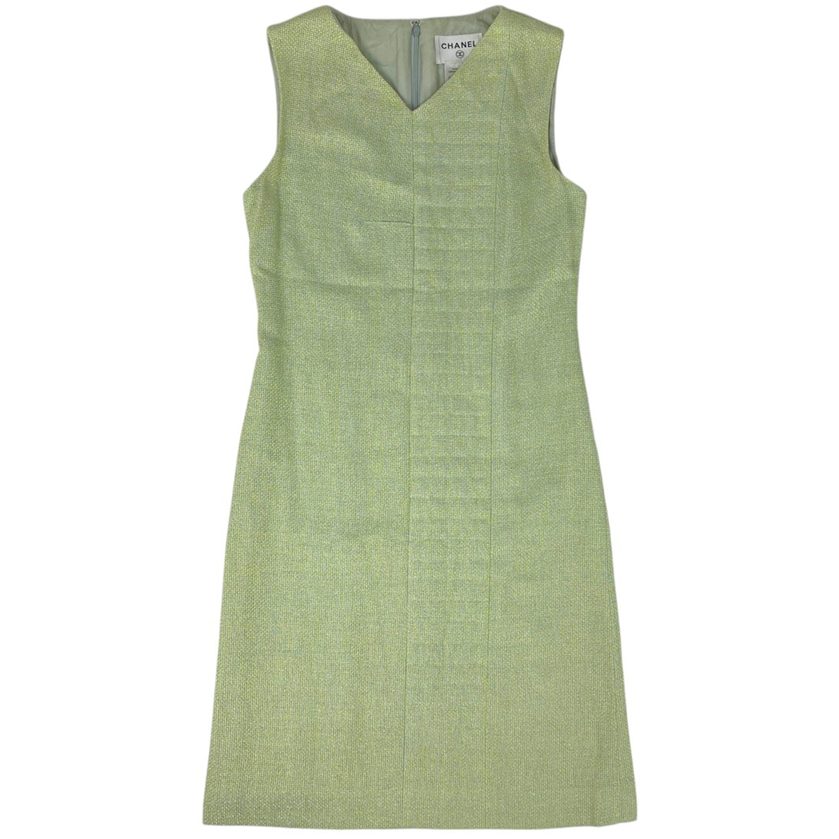 - シャネル CHANEL Vネック ノースリーブ ワンピース ロング 00S ナイロン コットン ウール ライトグリーン レディース 【中古】