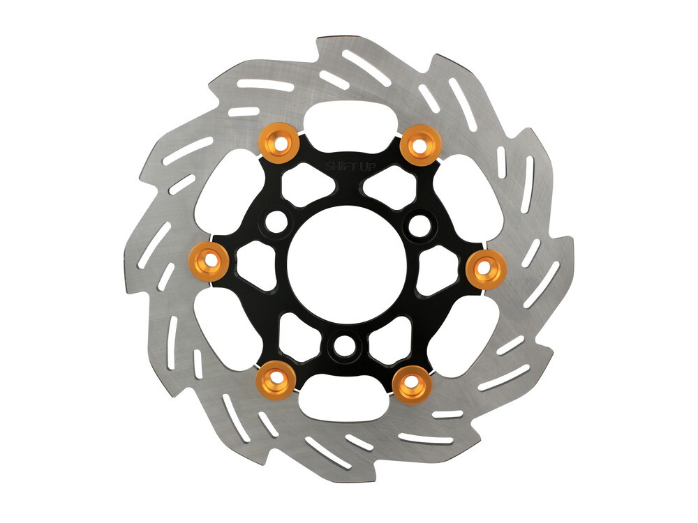 - エイプ100タイプD用ウェーブフローティングディスクローター(220mm/ブラック×ゴールド)_シフトアップ
