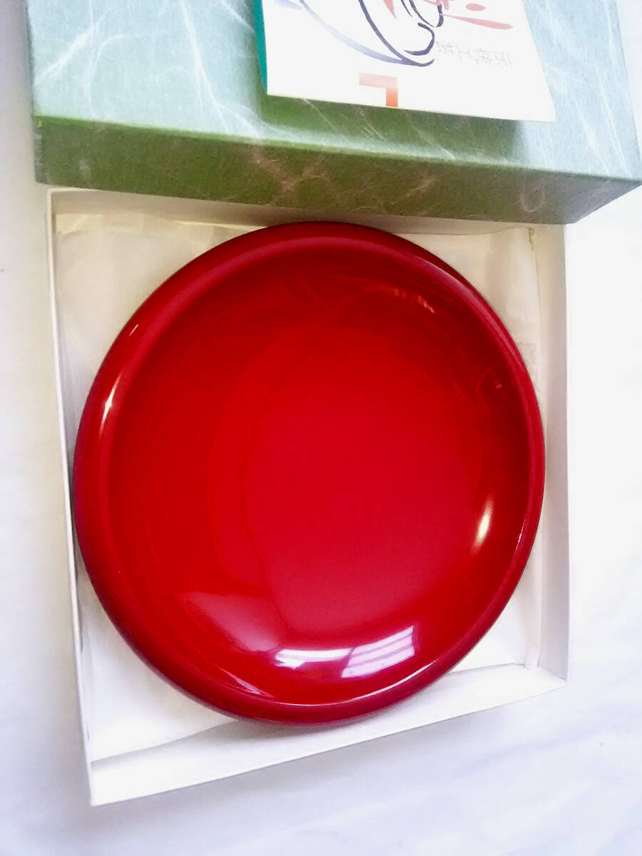- 阿部順次 制作 / 未使用 秋田特産 川連漆器 菓子器 / 伝統工芸品 食器 和食器 / 赤 小豆色 朱色