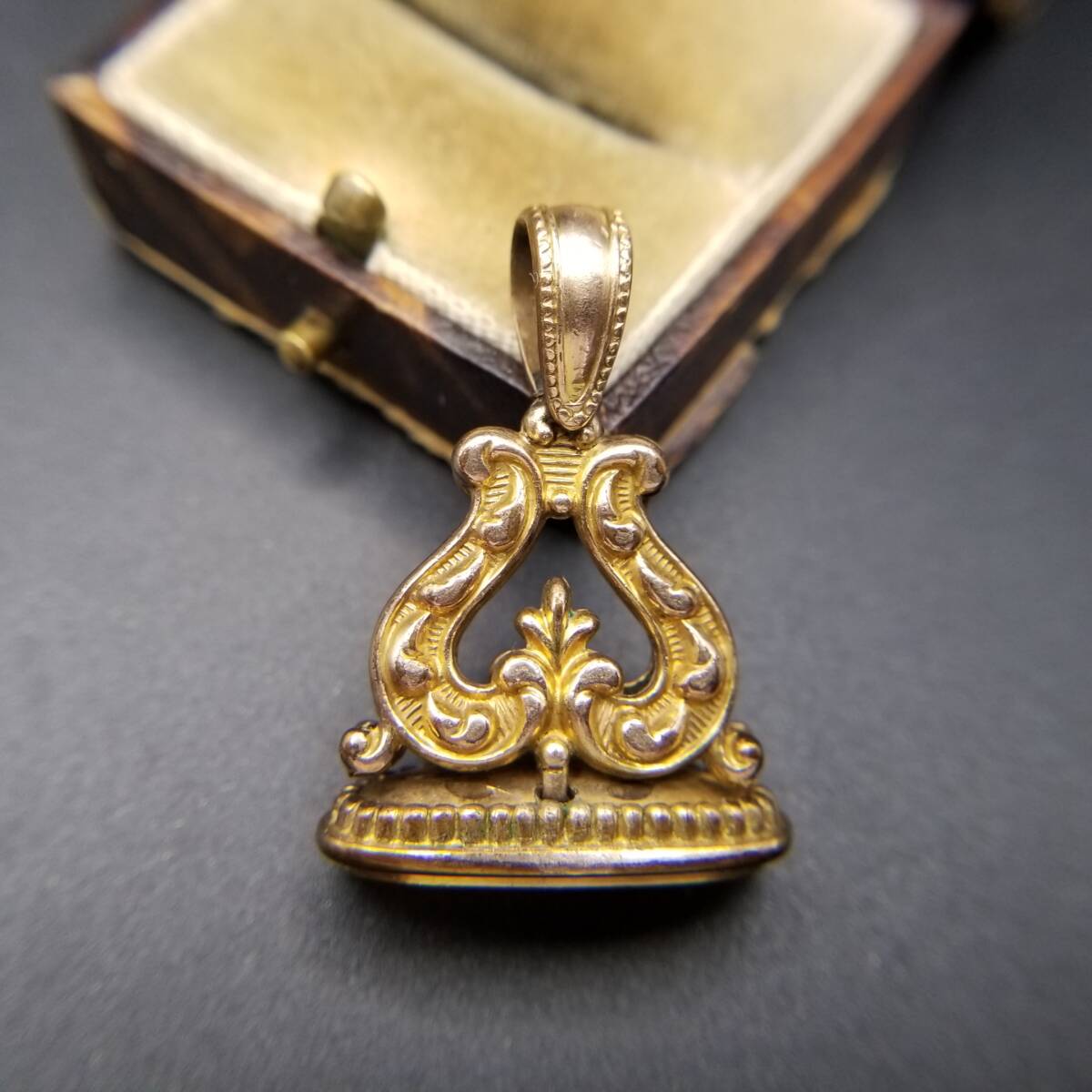 - アールヌーヴォー 装飾美 ヴィンテージ フォブ チャーム ペンダントヘッド イエローゴールド金張り 上品 エレガント 懐中時計 アクセサリー