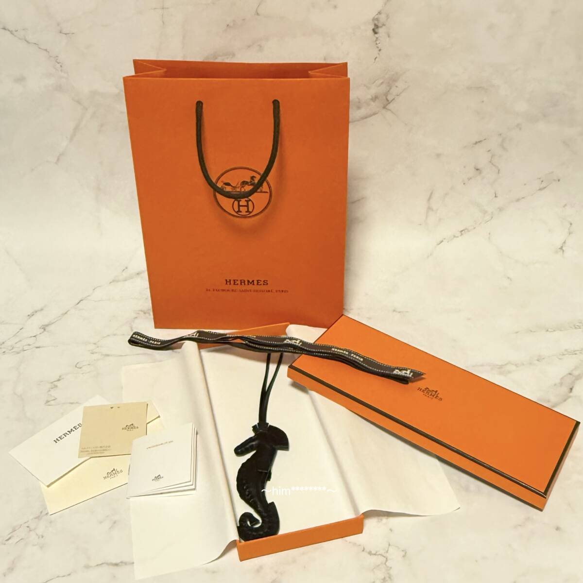 - HERMES エルメス チャーム Ipo イポ タツノオトシゴ シーホース B刻印 黒 ブラック ソーブラック アニューミロ ピコタン ケリー バーキンに