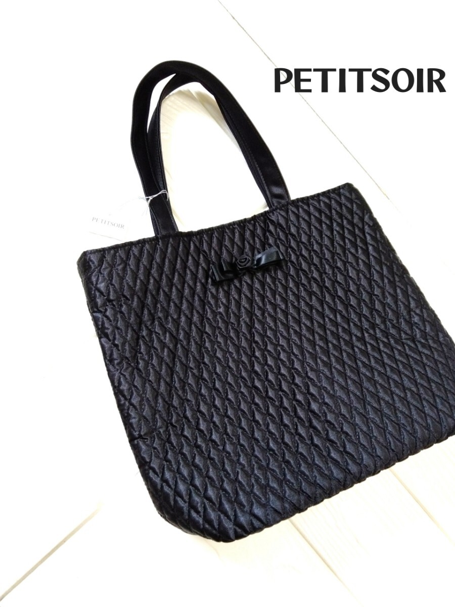 > 未使用*東京ソワール*PETITSOIR/プチソワール*トートバッグ*冠婚葬祭*キルティング*サブバッグ*黒*フォーマル*軽量*お受験*ブラック