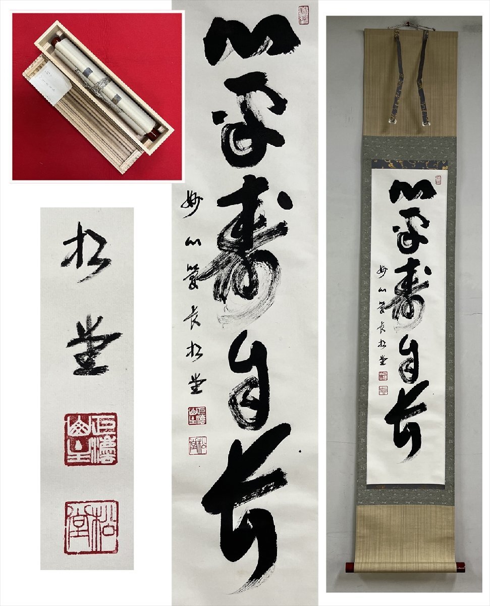 - 【千寿】大徳寺派 妙心寺 倉内松堂 心平寿自長 紙本 d1440◆箱 在銘 箱 茶掛 掛軸 掛物 茶道具