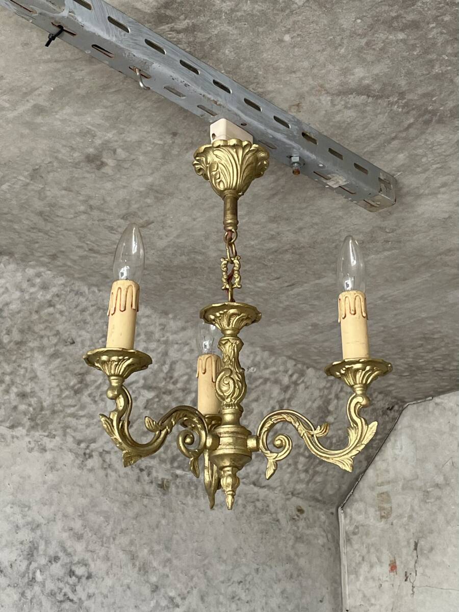 - 16-2. フランス アンティーク ミニシャンデリア 3灯 キャンドル ライト 吊り下げ シーリング ブロンズ 店舗 什器 美容室 カフェ