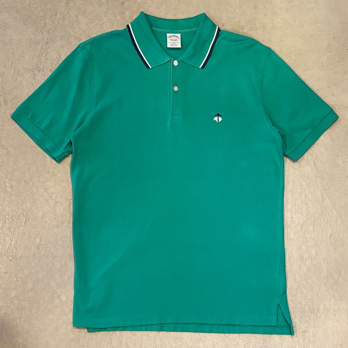 - 【BROOKS BROTHERS】ブルックスブラザーズ コットン 鹿の子 半袖 ポロシャツ ワンポイント ロゴ 刺繍 メンズ L 緑/Green 古着 USED 正規品