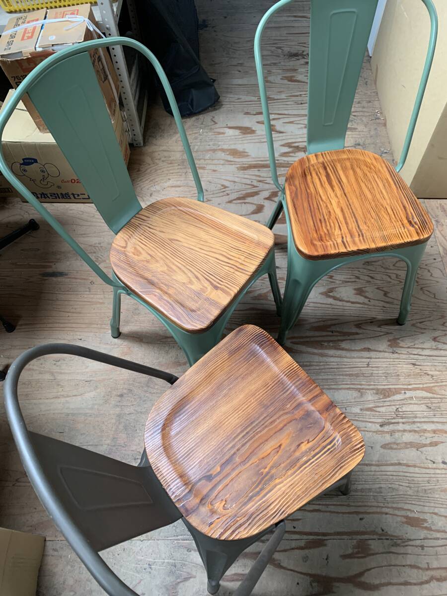 - a(7256) 直接お引き取り限定☆ ダイニングチェアー 3脚セット アンティーク調 ビンテージ ガーデニング テラス 天然木 スチール 大阪