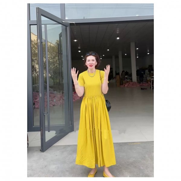 - mc 0705 ワンピース ゆったり オシャレ 通気性手触り抜群 肌に優しい ドレープ性 大人可愛 着丈125㎝ イエロー