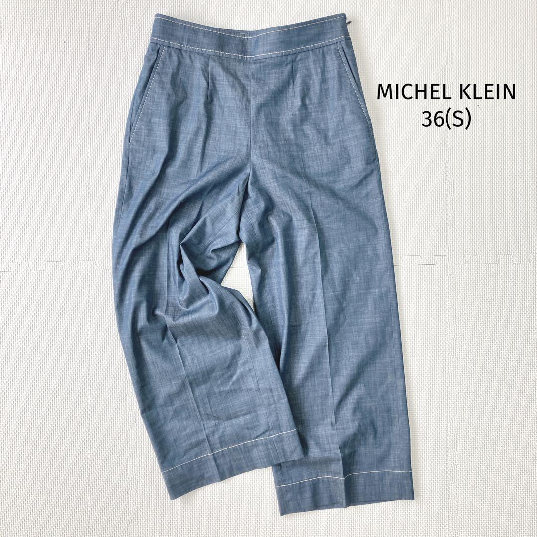 - ミッシェルクラン デニム風ワイドパンツ【36】ブルー 薄手 ストレート 良品
