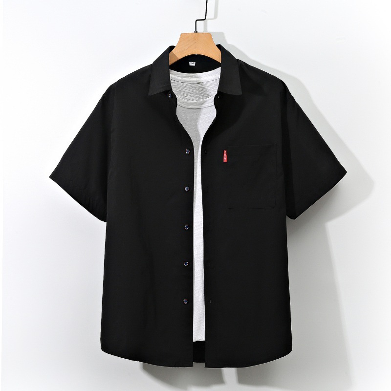- 新入荷半袖シャツ メンズ トップス カジュアルシャツ 開襟シャツ 無地 ビジネス 細身 夏サマー薄手ゆったり サマーシャツ 父の日ブラックL
