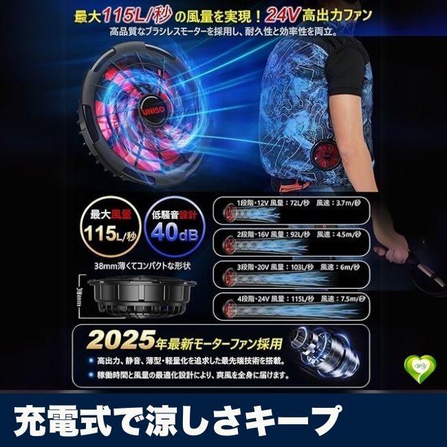 - 【充電式で涼しさキープ】充電式冷却ベスト 空調ファン付き 24V高出力 軽量 通気性UPF50+ 人気 おすすめ