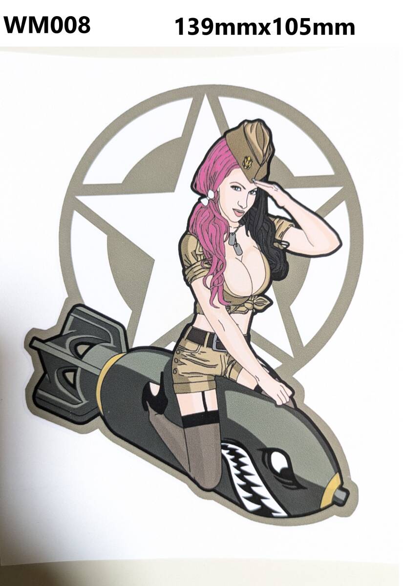 > WM08-04 レトロ 爆弾 ボンバー 敬礼ミリタリーガールステッカー セクシーステッカーミリタリー 軍 アーミー シール デカール