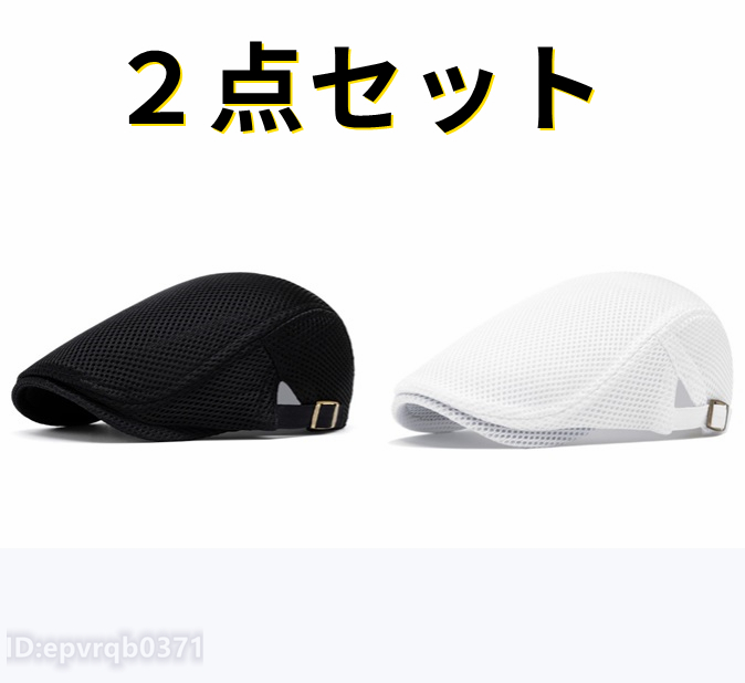 - 2点セット※ハンチング キャスケット 通気性抜群 メンズキャップ 紳士 帽子 ゴルフキャップ アウトドア フリーサイズ 黒/白