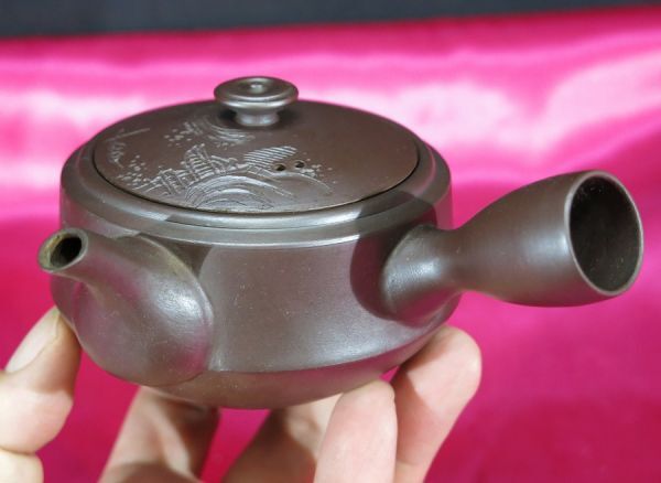 - e 漢詩舟人物図紫泥横手急須 陶器 /新渡 茶器 煎茶 朱泥 紫砂 色絵 豆彩 粉彩 白磁 染付 青花 呉須 青磁