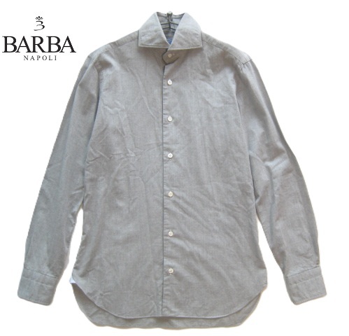> 超美品イタリア製!!バルバ BARBA*DANDY LIFE 美シルエット コットン セミワイドカラーシャツ 38 実寸M グレー ダンディーライフ