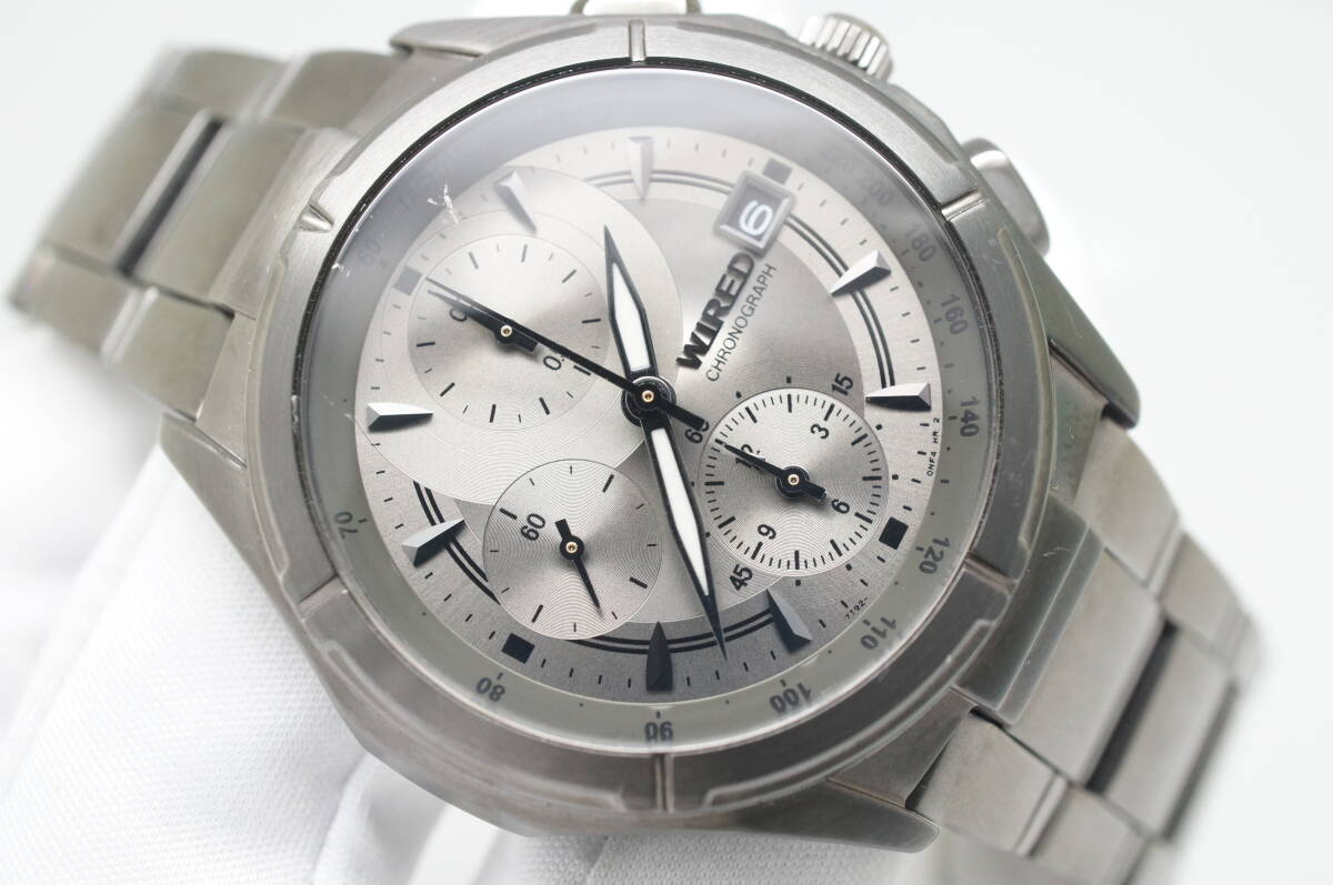 > E85●作動良好 SEIKO セイコー WIRED ワイアード 7T92-0GB0 クロノグラフ デイト メンズ腕時計 ブラックシルバー お洒落 クォーツ