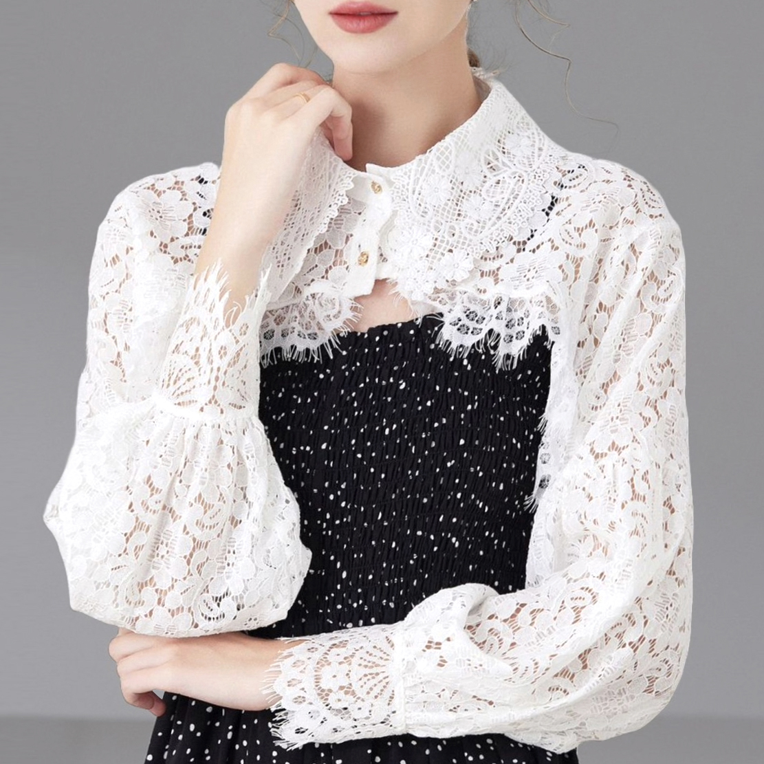 - 新品 レースボレロ 長袖 花柄 透かし 白 結婚式 宴会 お出かけ free49