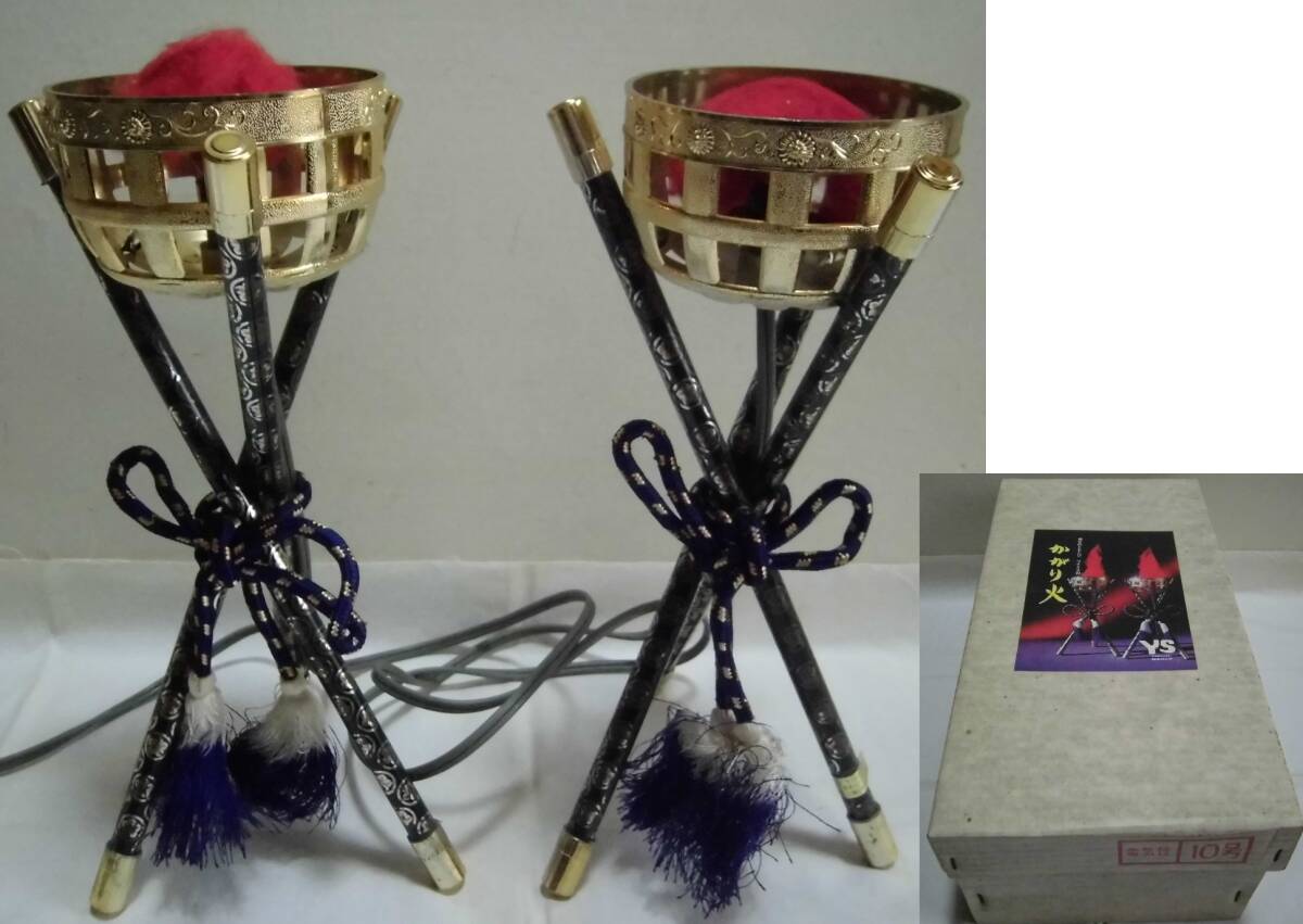 > 古い 御篝火 足は金属製 箱入り ワイエス かがり火 一対 10号 電気付 YAMAZAKI SEISAKUJO 五月人形道具 端午の節句 子供の日 レトロ