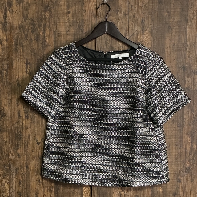 > M50◇MERCURYDUO | マーキュリーデュオ ツイード調半袖トップス ブラック×ホワイト×グレー レディース Fサイズ 中古品