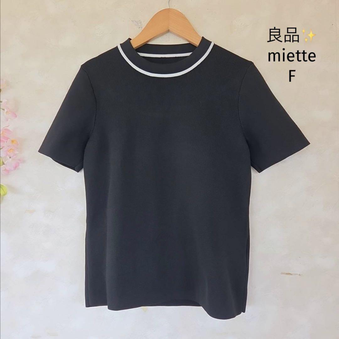 - ミエット miette サマーニット【F】半袖 バックデザイン 黒 良品