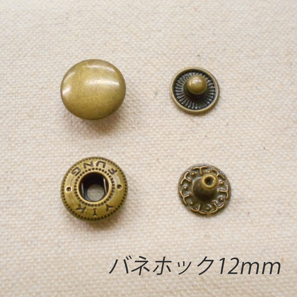 - レザークラフト バネホック 金具 12mm /50組 /アンティーク/ 手芸 キット パーツ 革 材料