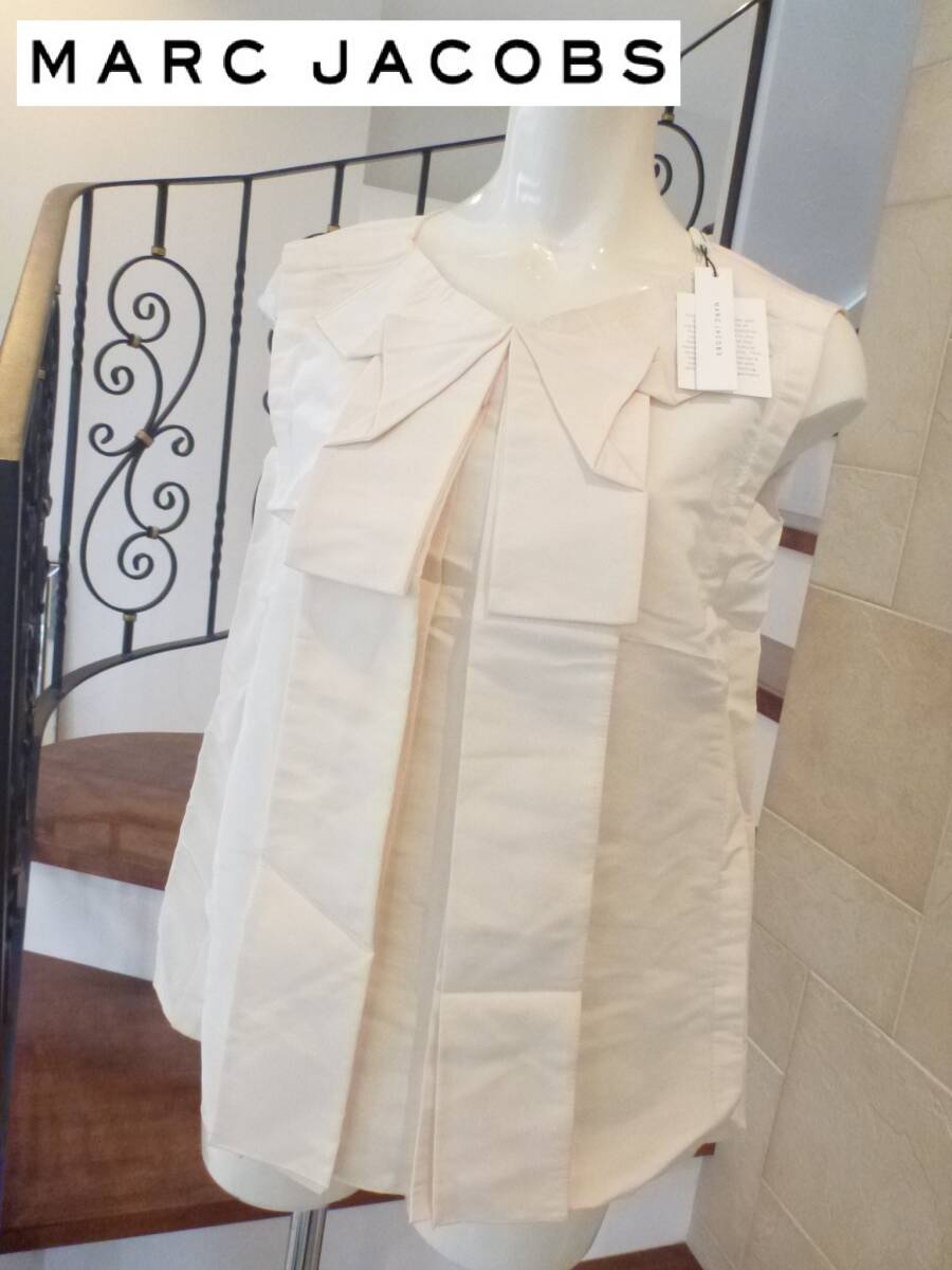 - 4万 新品 MARC JACOBS マークジェイコブス ★アイボリー リボン ノースリーブシャツ 0