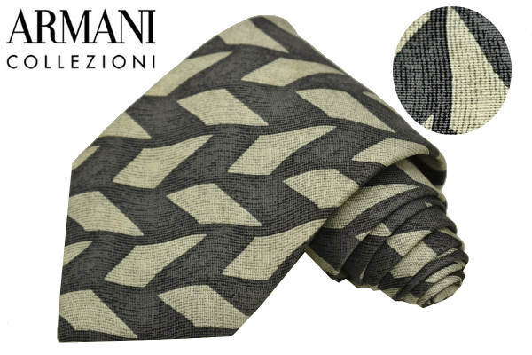 > N-2957★送料無料★ARMANI LE COLLEZIONI アルマーニコレッツォーニ★正規品 イタリア製 グレー系 パターン柄 シルクネクタイ