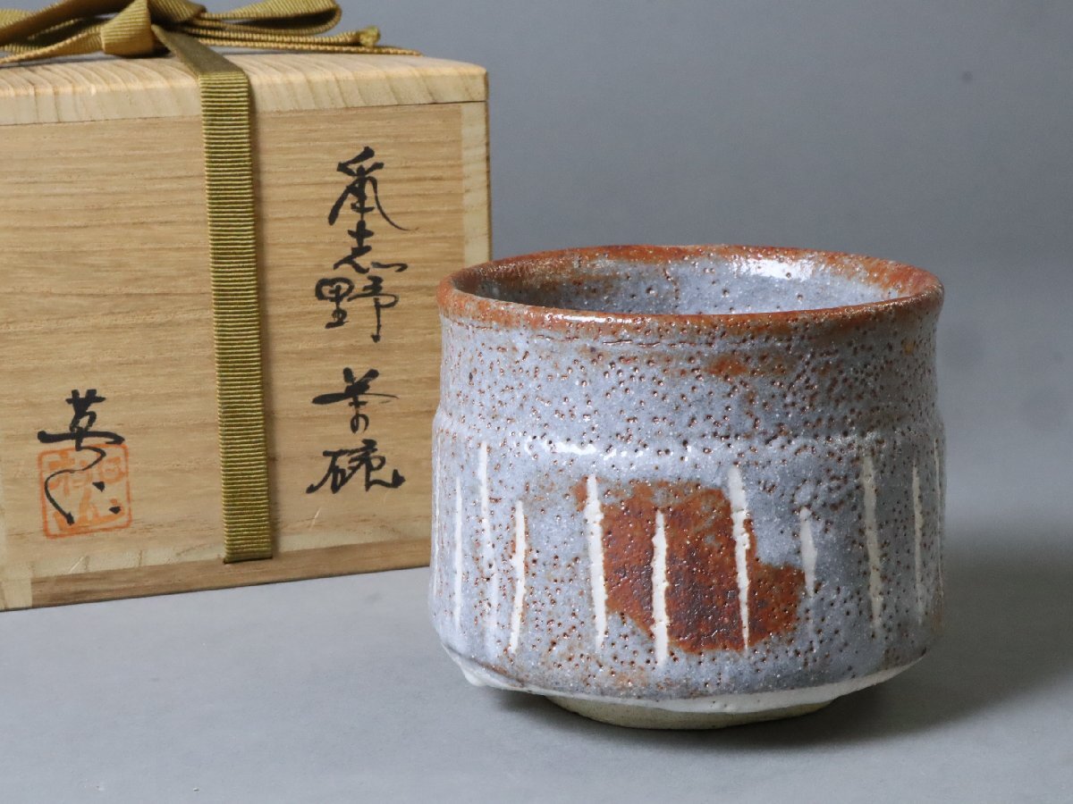・志野焼 桃山窯 林英仁 鼠志野茶碗 共箱 /茶道具 茶碗 茶器