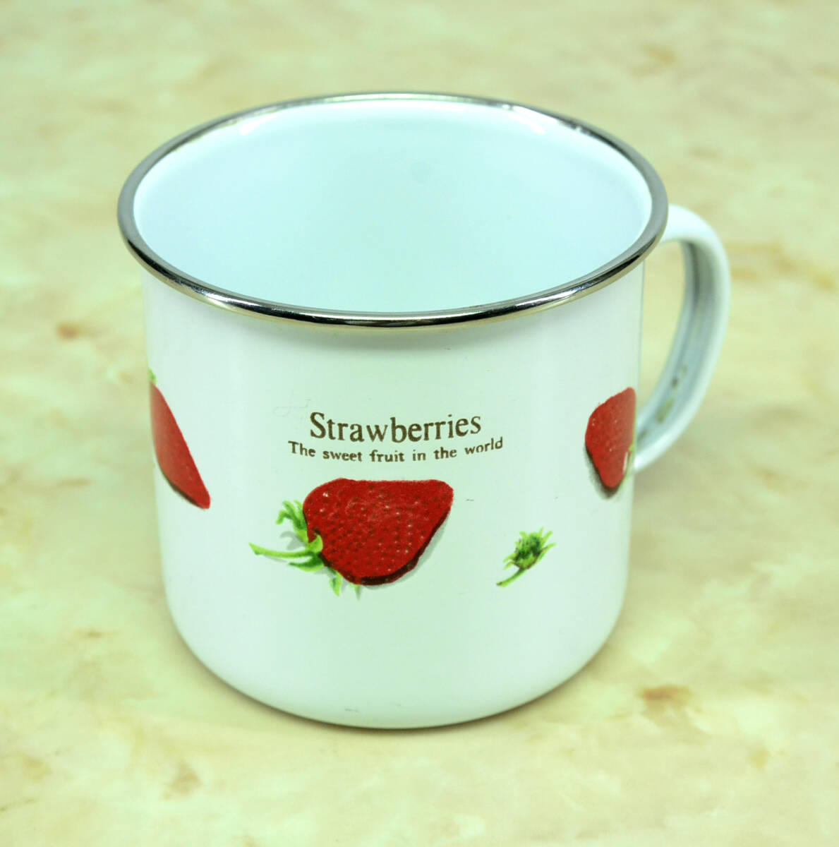 - 2♪ホーローのマグカップ いちご 直径9cm 深さ9cm 中古品